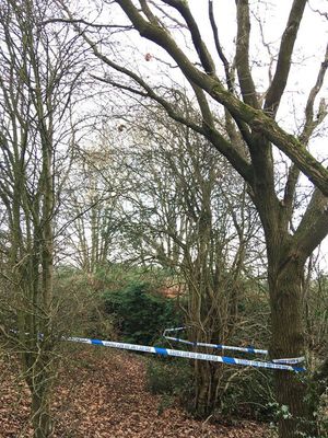 Police tape was around a number of areas in the undergrowth of Shelf Bank on Tuesday afternoon.