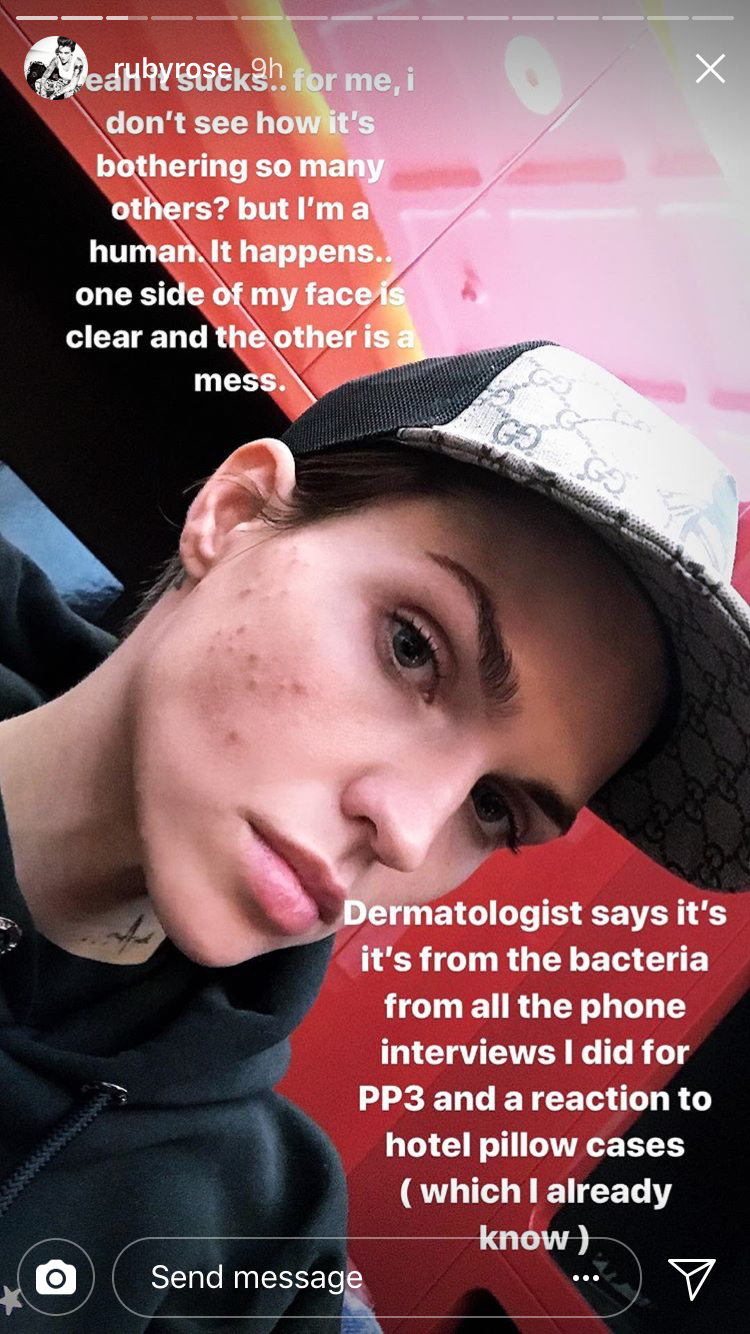 Ruby Rose has hit back after people made comments about her pimples, saying: “I’m a human, it happens.”