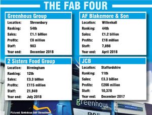 Willenhall-based food service business AF Blakemore, which was ranked 44th with sales of £1.2 billion and profits of £18 million.