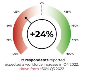 One in five businesses said their staff numbers had increased during the quarter, but many commented on the continuing struggle to attract suitably qualified staff.