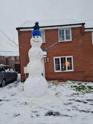 By midday most of the county and Mid Wales was covered in white, with snowmen appearing in parks, gardens and fields across the region.