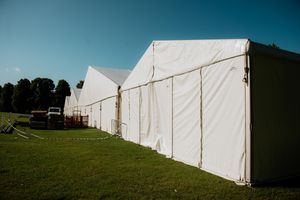 Construction workers have been busy erecting the huge marquees that will house thousands of blooms on show day in the Quarry.